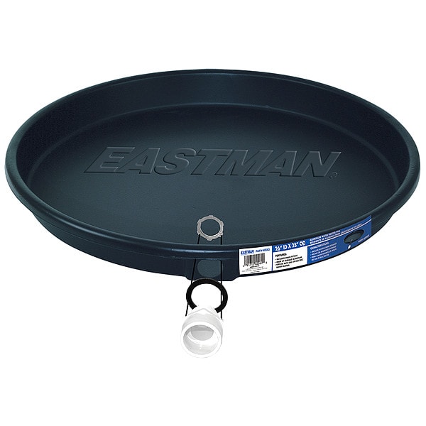 Water Heater Pan, Bottom Inside Diameter 26 in, Fitting Size 1 in, Outside Diameter 28 in, Material Plastic, Finish Plastic Coated, Fitting Material PVC, Fitting Type Hub x MIP, For Heater Power Type Electric, Includes Nut, PVC Fitting, Washer, Includes Drain Fitting Yes, Maximum Operating Temperature 180 Degrees F, Overall Depth 2.5 in