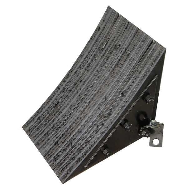 Primary Wheel Chock Application General Purpose, Width 11 1/8 in, Height 13 3/4 in, Depth 13 3/4 in, Laminated Rubber, Wheel Chock Surface Tread Smooth, Wheel Chock Style Single, Max. Vehicle Weight Not Rated, Wheel Chock, Black, Includes Steel Hook Loop, Wheel Chock Base Tread Smooth