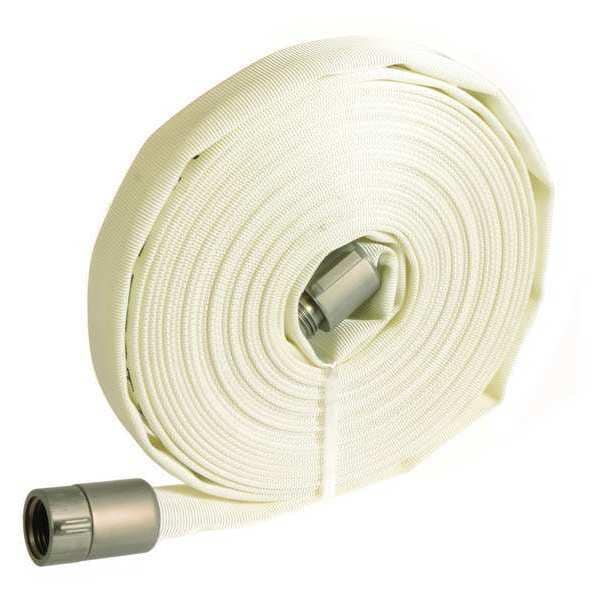 Wildland Fire Hose, Coupling Lug Style Rocker, Fire Hose Type Single Jacket, Fitting Material Aluminum x Aluminum, Fitting Type FNST x FNST, Hose Color White, Hose Fitting A Material Aluminum, Hose Fitting A Type FNST, Hose Fitting B Material Aluminum, Hose Fitting B Type FNST, Hose Inside Diameter 1 in, Hose Length 50 ft, Hose Tube Material Polyester, Jacket Material Polyester, Maximum Working Pressure at 70F 250 psi, Standards NFPA 1962, Burst Pressure 900 psi