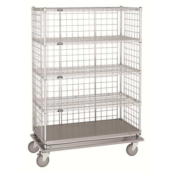 Single-Side-Access Wire Stock Cart, Load Capacity 1,000 lb, Number of Shelves 5, Shelf Length 60 in, Shelf Width 24 in, Shelf Construction Solid & Wire Combination, Caster Brake Type Total Lock Brake, Caster Wheel Dia. 6 in, Caster Wheel/Tread Material Polyurethane, Caster/Wheel Configuration (4) Swivel, Caster/Wheel Mounting Location Standard, Distance Between Shelves 15 in, Finish Zinc Plated, Material Steel, Method of Construction Boltless, Overall Length 24 in, Overall Width 60 in