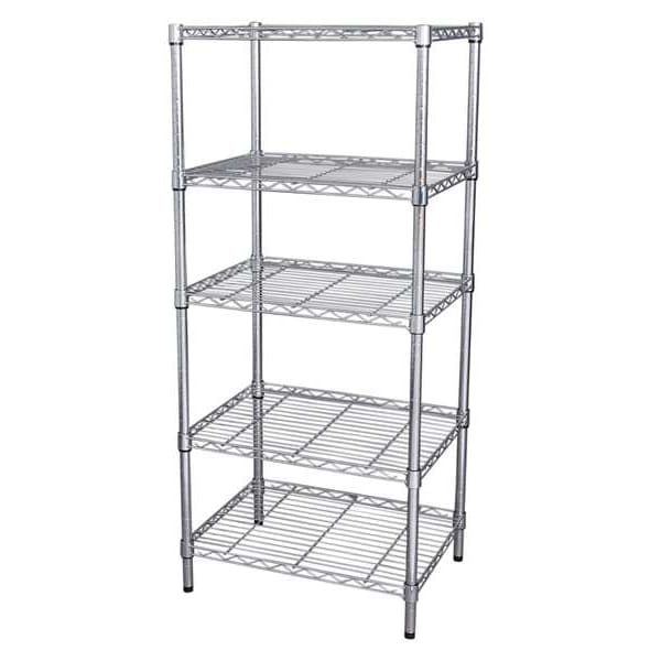 Wire Shelving Unit, Adjustability Adjustable, Silver Color, Zinc-Plated, Includes (4) Posts, Load Capacity per Shelf 300 lb, Material Steel, Overall Depth 18 in, Overall Height 63 in, Overall Width 48 in, Dry Recommended Environments, Shelf Adjustment Increments 1 in, Standards NSF, 1,200 lb, Shelf Configuration Starter, Shelf Adjustment Type Split Sleeve, Number of Shelves 5