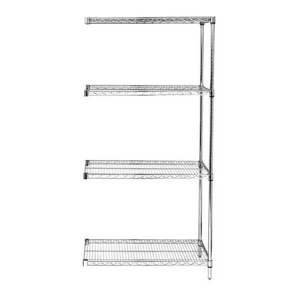 Wire Shelving Unit, Adjustability Adjustable, Silver Color, Chrome, Includes (8) S Hooks, Load Capacity per Shelf 600 lb, Material Steel, Overall Depth 24 in, Overall Height 54 in, Overall Width 48 in, Dry Recommended Environments, Shelf Adjustment Increments 1 in, Standards NSF, 2,000 lb, Shelf Configuration Add-On, Shelf Adjustment Type Split Sleeve, Number of Shelves 4