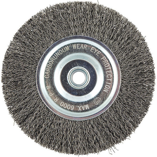 Wire Wheel Brush, Bristle Type Crimped Wire, Product Type Wire Wheel Brush, Bristle Material Carbon Steel, Brush Dia. 6 in, Grit Not Applicable, Face Width 1/2 in, Bristle Diameter 0.014 in, Bristle Length 1 5/16 in, Compatible Tool Type Angle Grinder, Connector Type Threaded Hole, Connector Size 5/8 in, Operating Speed - Maximum 6,000 RPM, Shank Length Not Applicable, Color Not Applicable