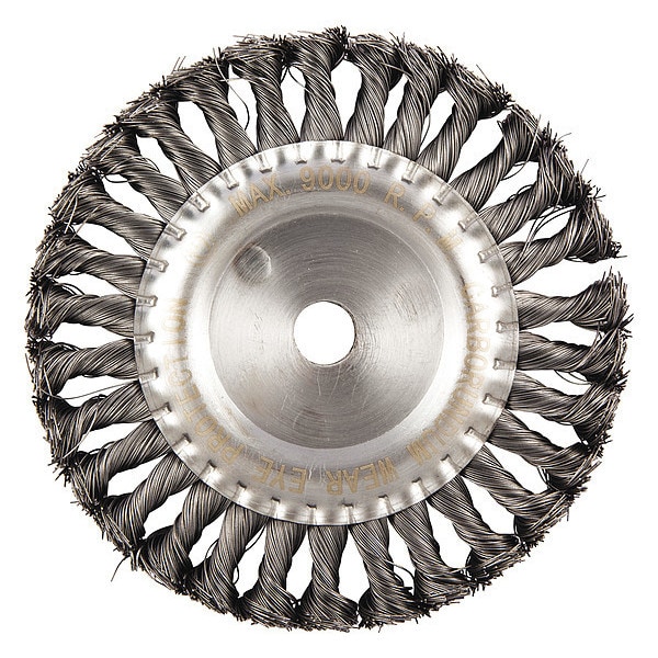Wire Wheel Brush, Bristle Type Standard Twist Knot Wire, Product Type Wire Wheel Brush, Bristle Material Carbon Steel, Brush Dia. 6 in, Grit Not Applicable, Face Width 1/2 in, Bristle Diameter 0.014 in, Bristle Length 1 1/4 in, Compatible Tool Type Angle Grinder, Connector Type Threaded Hole, Connector Size 5/8 in, Operating Speed - Maximum 9,000 RPM, Shank Length Not Applicable, Color Not Applicable