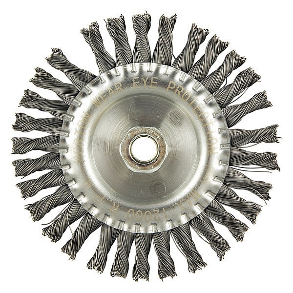 Wire Wheel Brush, Bristle Type Standard Twist Knot Wire, Product Type Wire Wheel Brush, Bristle Material Carbon Steel, Brush Dia. 6 in, Grit Not Applicable, Face Width 5/8 in, Bristle Diameter 0.02 in, Bristle Length 1 1/4 in, Compatible Tool Type Angle Grinder, Connector Type Threaded Hole, Connector Size 5/8 In.-11, Operating Speed - Maximum 9,000 RPM, Shank Length Not Applicable, Color Not Applicable, Series Gemini