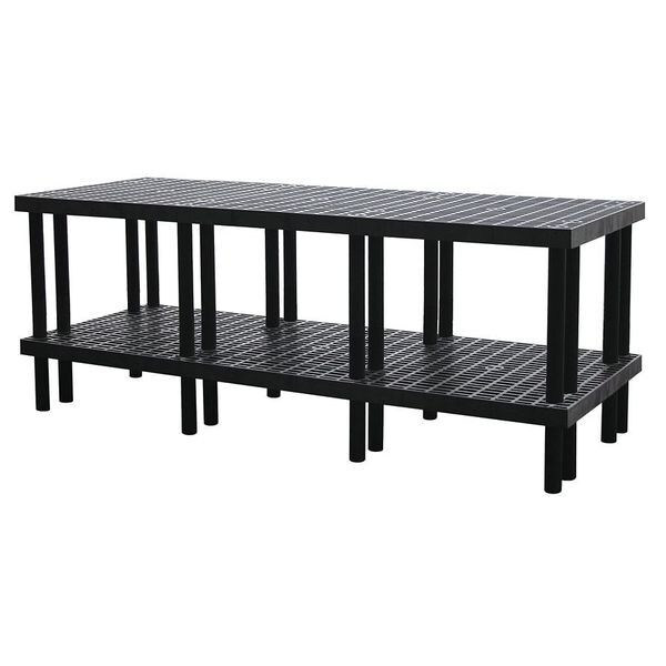 Workbench, Height Adjustability Fixed Height, Top Material Plastic, Assembly Fully Assembled, Color Black, Frame Material Plastic, Leg Type Straight Leg, Maximum Adjustable Height Not Applicable, Minimum Adjustable Height Not Applicable, Non-Metal Top Thickness 2 5/8 in, Number of Cabinets 0, Number of Drawers 0, Number of Knockouts 0, Included Components Lower Shelf, Number of Outlets 0, Number of Shelves 2, Overall Depth 36 in, Overall Fixed Height 36 in, Overall Load Capacity 850 lb
