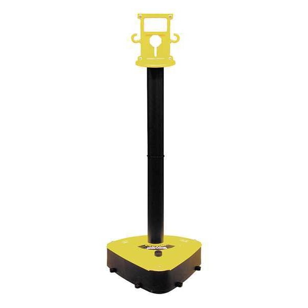 X-Treme Duty Stanchion, Post Top Contemporary, For Use With 2 in and 2 in HD Plastic Chain, Compatible Line Chain, Overall Height 46 1/2 in, Post Diameter 3 in, Base Diameter 21 in, Fillable Yes, Post Material Polyethylene, Base Type Flat, Base Weight 5 lb, Post Color Black, Base Color Black, Includes Base, Extension Piece, Handle Top, Product Type Stanchion, Indoor/Outdoor Usage Indoor, Outdoor, Post Finish Matte, Base Material HDPE, Base Finish Matte, Color Black/Yellow