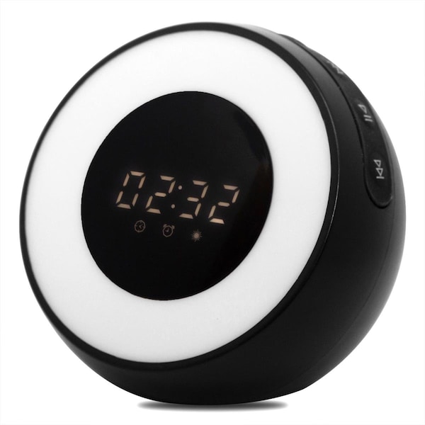 Alarm Clock with Built-in Air Purifier, Sound Machine, Wireless Bluetooth Speaker, and LED Lamp