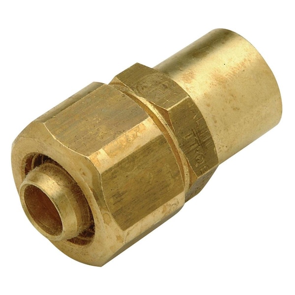 - Brass female sweat adapter available in 1/2" Comp. x 1/2" MS, 5/8" Comp. x 3/4" MS, and 3/4" Comp. x 3/4" MS.