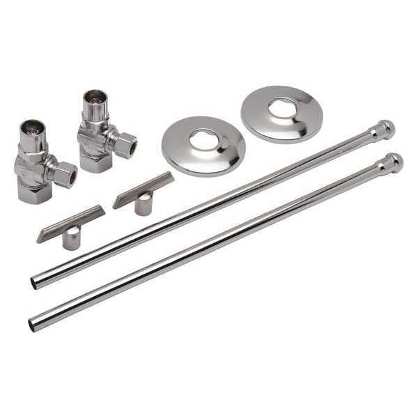Water Supply Stop, Handle Operation 1/4-Turn, Body Material Brass, Body Finish Chrome-Plated, Connection Size - Side 1 1/2 in, Connection Type - Side 1 Compression, Connection Size - Side 2 3/8 in, Connection Type - Side 2 Compression, Connection Size - Side 3 Not Applicable, Connection Gender - Side 3 Not Applicable, Connection Type - Side 3 Not Applicable, Maximum Pressure - Operating 200 psi, Operating Temperature - Minimum 33 Degrees F, Operating Temperature - Maximum 100 Degrees F