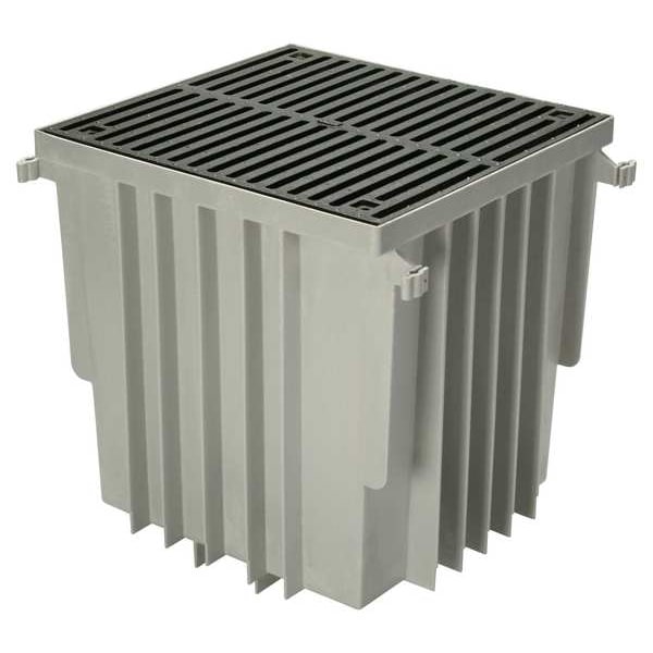 Trench Drain Basin, Standards ADA Compliant, FDA Compliant, Trench Color Gray, Application Driveway, Food Processing, Factory Floor, Loading Dock, Product Type Trench Drain Basin, Shape Rectangular, Overall Diameter Not Applicable, Includes Grate Yes, Includes (4) Concrete Anchors Per Basin, Trench Material Plastic, Overall Length 23 1/4 in, Grate Material Ductile Iron, Grate Color Black, Overall Depth 20 in, Overall Width 24 5/8 in, Grate Surface Type Slotted