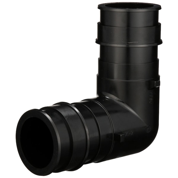 Barbed Fitting Elbow, Fitting Side A Connection Type Barbed, Fitting Side B Connection Type Barbed, Fitting Side B Pipe Size 2 in, Fitting Side A Tube Inner Diameter 1 31/64 in, Barb Style Standard, Fitting Material Polymer, Material Grade Not Applicable, Overall Length 4 23/32 in, Specific Fitting Shape 90 Degrees Elbow, Application Potable Water, Maximum Operating Pressure 160 psi, Maximum Operating Temperature 200 Degrees F, Standards ASTM F1960, CSA B137.5, NSF/ANSI 372, NSF/ANSI 61