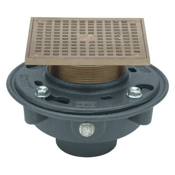 Floor Drain, Standards ASME A112.6.3, CSA B79-2008, Includes Grate Yes, Nominal Pipe Size 2 in, Pipe Outside Diameter 2 in, Drain Material Nickel Bronze, Includes Adjustable Collar, Connection Type No Hub, Ligature Resistant No, Body Height 3 7/8 in, Product Type Floor Drain, Drain Style Square, Grate Material Nickel Bronze, Grate Color Gray, Overall Width Not Applicable, Overall Length Not Applicable, Overall Diameter 8 3/8 in, Body Diameter 6 in, Overall Height 6 1/4 in