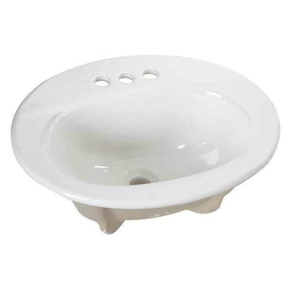 Lavatory Sink, Without Faucet, Body Material Vitreous China, Mounting Type Drop In, Color White, Overall Length 20 In., Overall Width 17 In., Overall Height 8-7/8 In., Bowl Size 8-7/8 In., Bowl Depth 6-9/16 In., ADA Compliant Yes, Back Splash No, Bowl Shape Oval, Side Splash No, Faucet Operation Dual Handle, Number of Stations 1, Drain Opening 1-1/4 In., Faucet Mounting Centers 4, Faucet Hole Dia. 1-1/4 In., Number of Holes 3, Manufacturers Warranty Length 3 yr.