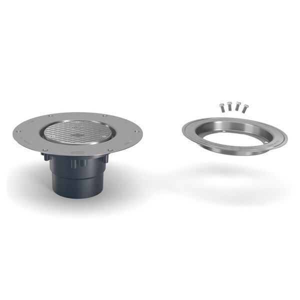 PVC; Deck Plate, Clamp: Stainless Steel, Strainer: Round, Floor Cleanout