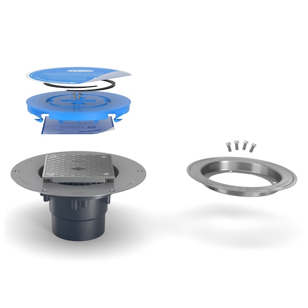 PVC; Deck Plate, Clamp: Stainless Steel, Strainer: Square, Floor Cleanout