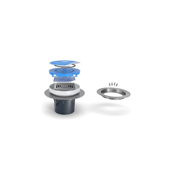 PVC; Deck Plate, Clamp: Stainless Steel, Strainer: Square, Floor Drain with Deck Plate
