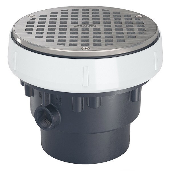 Floor Drain, Standards Not Applicable, Flange Diameter Not Applicable, Height Above Flange Not Applicable, Includes Strainer Yes, Includes Grate Yes, Nominal Pipe Size Not Applicable, Pipe Outside Diameter Not Applicable, Strainer Material Stainless Steel, Drain Material Plastic, Includes PVC Body, Rough In Adapter Assembly, Connection Type Solvent Weld, Ligature Resistant Not Ligature-Resistant, Body Height 3 3/4 in, Product Type Floor Drain, Drain Style Round, Grate Material Not Applicable