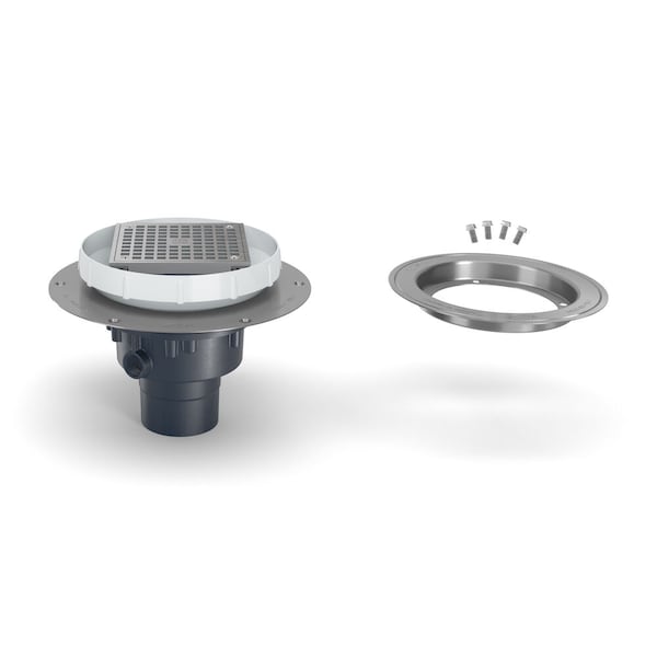 Round Adjustable Round Drain, PVC, Stainless Steel, 4", Solvent-Weld