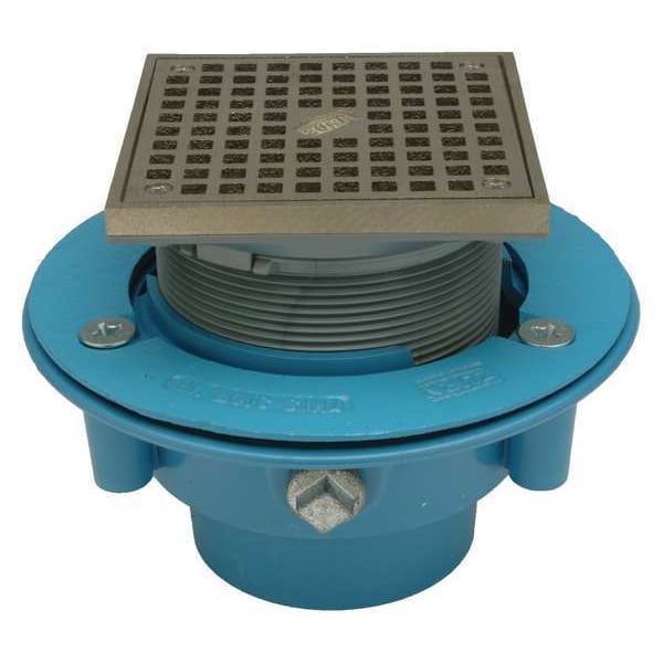 Floor Drain, Standards Not Applicable, Connection Thread Type Not Applicable, Flange Diameter Not Applicable, Height Above Flange Not Applicable, Includes Strainer No, Includes Grate Yes, Nominal Pipe Size 2 in, Pipe Outside Diameter Not Applicable, Drain Material Plastic, Includes Not Applicable, Connection Type Not Applicable, Ligature Resistant Not Ligature-Resistant, Body Height 3 1/8 in, Product Type Floor Drain, Drain Style Square, Grate Material Nickel Bronze, Grate Color Gray