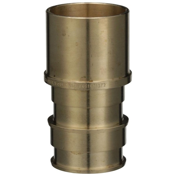 Barbed Fitting Adapter, Fitting Side A Connection Type Barbed, Fitting Side B Connection Type FTG, Fitting Side B Pipe Size 1 1/4 in, Fitting Side A Tube Inner Diameter 61/64 in, Barb Style Standard, Fitting Material Brass, Material Grade C69300, Overall Length 2 9/16 in, Specific Fitting Shape Straight Adapter, Application Potable Water, Maximum Operating Pressure 160 psi, Maximum Operating Temperature 200 Degrees F, Standards ASTM F1960, CSA B137.5, NSF/ANSI 372, NSF/ANSI 61
