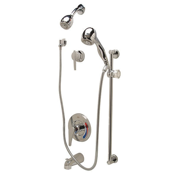 Tub and Shower Trim Kit, ADA Compliance No, CEC Compliant, Connection Size 1/2 in, FNPT, Face Shape Circle, Faucet Handle Type Lever, Fixed Showerhead Flow Rate 2.5 gpm, Fixed Showerhead Thickness 8 in, Fixed Showerhead Width 2 3/4 in, Handheld Showerhead Flow Rate 2.5 gpm, Handheld Showerhead Thickness 1 1/2 in, Handheld Showerhead Width 3 1/4 in, Handle Length 8 1/4 in, Number of Handles 2, Zurn, Temp Gard Series, Shower Connection Type FNPT, Shower Valve Type Pressure Balancing