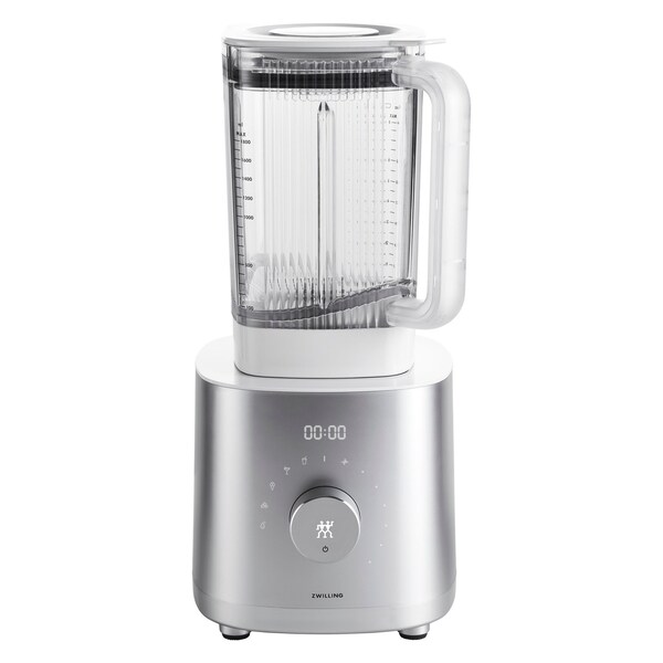 ZWILLING Enfinigy is the revolutionary new electrics line that mixes German engineering and innovation with a fresh, sleek design. This gorgeous line combines modern aesthetics with high-performance features and the longest warranties in the industry. Unique to this collection is the accompanying app, which can be downloaded for free from the App Store. Simply scan the QR code on the product packaging to download the ZWILLING Culinary World App to search a database of original recipes. ZWILLING Enfinigy is the revolutionary new electrics line that mixes German engineering and innovation with a fresh, sleek design. This gorgeous line combines modern aesthetics with high-performance features and the longest warranties in the industry. Unique to this collection is the accompanying app, which can be downloaded for free from the App Store. Simply scan the QR code on the product packaging to download the ZWILLING Culinary World App to search a database of original recipes. Give your recipes a boost with the new blender series. These compact, high-watt workhorses easily whip up creamy purees, chunky salsas, and healthy smoothies to go. You’ll get the perfect texture every time, thanks to the sharp blades for which ZWILLING is well-known. This series features the 64 oz capacity Power Blender Pro and Power Blender, along with the 20 oz. capacity Personal Blender. Revolutionary countertop blender for shakes and smoothies with a fresh, sleek design; Combines modern aesthetics with high-performance features. This blender for kitchen easily whips up creamy purees, chunky salsas, and healthy smoothies. 6 speed settings, 1400 Watts. Sharp German-made winglet blade on this blender finely chops even the toughest foods. This blender for shakes and smoothies features a tamper holder, a removable lid, and a digital display. Stainless steel body, BPA-free plastic 64 oz. capacity jar. Can be used with Zwilling's free downloadable Culinary World app to search a database of original recipes. Measures 12''L x 12''W x 20.5''H, weighs 12.9 lbs; Cord measures 40''L.