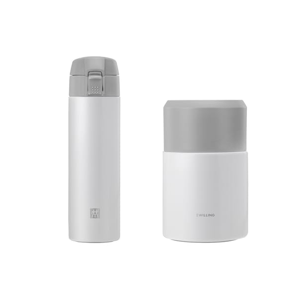 ZWILLING Thermo is the healthy, sustainable choice for enjoying home cooked meals or home brewed drinks on the go. Whether you are taking your lunch to school, your coffee to work, infused drinks on a hike, or a cold beverage on a long drive, Thermo offers leakproof, double-walled vacuum insulated containers of superior design.Ideal for bringing coffee, tea, or cold beverages to work, on car trips, or to sporting events. Hot beverages stay hot for up to 7 hours, while cold beverages remain cold for up to 12 hours. The one touch opening lid is made for one hand operation, with a safety lock to prevent accidental opening. With a removable lid, clean up is a cinch. Sustainable, reusable option for to-go beverages and food. Keeps hot food and beverages hot, cold food and beverages cold. Removable parts for easy, hygienic cleanup. Clean, minimalist design available in silver-white and black matte. Features double-walled insulation made of 18/10 stainless steel . Anti-slip bottom. 100% leakproof. BPA free. Dishwasher safe.