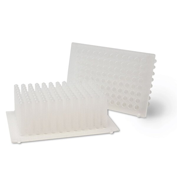 The 96 Tip Comb can be used in magnetic bead movers for the high-throughput purification of DNA and/or RNA. The dimensions of the comb conform to SBS standards, and the unique V-bottom tip of the comb make it compatible with popular bead moving instruments such as the KingFisher Flex, KingFisher Apex, and KingFisher Presto.The 96 Tip Comb features durable, clear polypropylene construction and is compatible with our V-bottom 96 Deep Well Plate.Suitable for Automated High-Throughput Nucleic Acid Purification WorkflowsCompatible with KingFisher Purification SystemsDurable Polypropylene Construction Compatible Instruments : KingFisher Flex, KingFisher Apex, and KingFisher PrestoDimensions H x W x L : 49.55 mm x 85.20 mm x 127.20 mmMaterial : Polypropylene Shipping Weight: 0.25 lbsShipping Dimensions: 7.00 x 3.50 x 2.25Research or further manufacturing use only, not for food or drug use.
