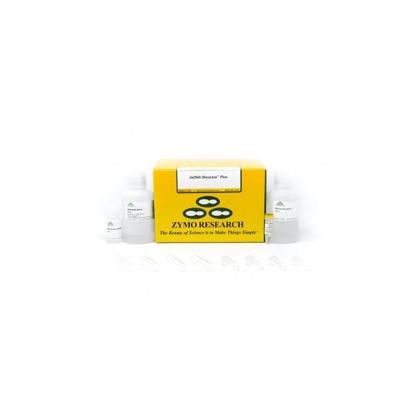 Unit Definition: One unit (U) is defined as the amount of enzyme required to convert 250 ng human DNA into DNA fragments in the range of 100 €“ 500 bp in 20 minutes at 42°C in a total reaction volume of 10 μl. Specificity: Provided with 5X dsDNA Shearase Plus Reaction Buffer Enzyme Inactivation and DNA Cleanup: For enzyme inactivation and DNA purification we recommend the DNA Clean & Concentrator kit. Addition of 5 volumes of DNA Binding Buffer from the DNA Clean & Concentrator kit to each reaction volume (5:1) inactivates dsDNA Shearase Plus. Alternatively, the enzyme can be inactivated by incubating at 65°C for 5 minutes followed by DNA purification by phenol/chloroform extraction. Enzyme Concentration: 1 U/μl Enzyme Inactivation: 65°C for 5 min. Optimum Reaction Temperature: 42°CShipping Weight: 2 lbs