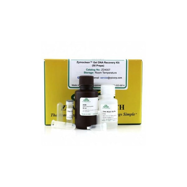 The Zymoclean Gel DNA Recovery Kit is a gel DNA extraction kit that provides rapid purification of high quality DNA from TAE/TBE-buffered agarose gels. This gel DNA extraction kit features Zymo-Spin technology to yield high-quality, purified DNA in just minutes. DNA purified using the Zymoclean Gel DNA Recovery kits is perfectly suited for use in DNA ligation reactions, sequencing, DNA labeling reactions, PCR, etc. Quick recovery of ultra-pure DNA from agarose gels. Column design permits DNA elution at high concentrations into minimal volumes. Eluted DNA is well-suited for use in DNA ligation, sequencing, labeling, PCR, etc.