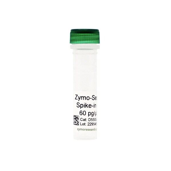 Zymo-Seq Methyl Spike-in Control is comprised of six unique double-stranded synthetic amplicons 180-200 bp with distinct sequences derived from the E. coli K12 genome, and each amplicon represents a different CpG methylation level ranging from 0% to 100%. This control serves as an in situ control for next generation sequencing library preparations, providing an unbiased way of calculating the efficiency of the bisulfite conversion reaction. It can also be used to validate bioinformatics pipeline calibration by demonstrating a strong correlation between observed and expected methylation levels of the amplicons. Ensures reliable calculation of bisulfite conversion efficiency post library prep.Six unique amplicons with 0, 10, 25, 50, 75, and 100% methylation levels allow for a standard curve and robust data normalization.Compatible with various species except for E. coli and bisulfite sequencing library preparation methods. Concentration : 60 pg/l Amplicon # Methylation Level 1 0% 2 10% 3 25% 4 50% 5 75% 6 100% Source : Double-stranded synthetic amplicons derived from the E. coli genome.Storage : 20CShipping Weight: 0.05 lbsShipping Dimensions: 5.00 x 3.00 x 0.03Research or further manufacturing use only, not for food or drug use.
